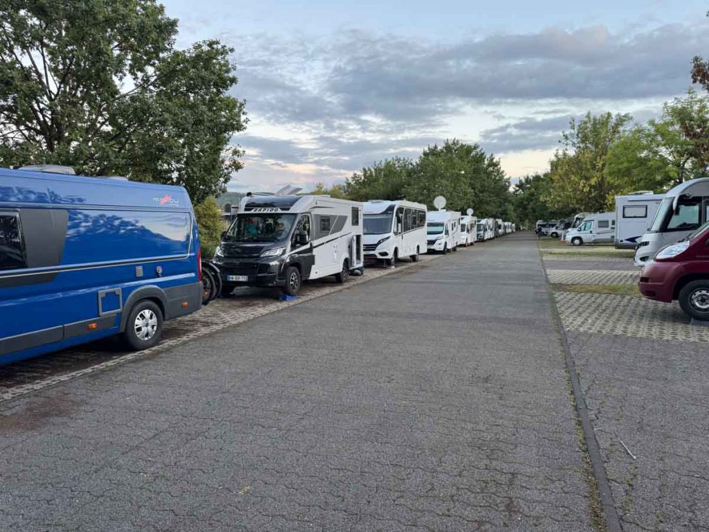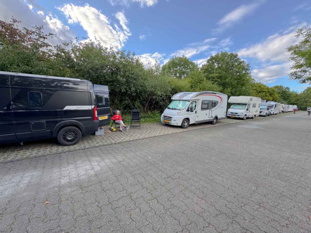 De stadscamping van Trier was bij aankomst rond 17:00 uur vol. Men verwees ons naar een camperplaats een paar honderd meter verderop. Daar vonden we nog een plaats maar dat was toch wel van de laatste want de camperplaats stond bomvol. Ik schat zo’n 100+.