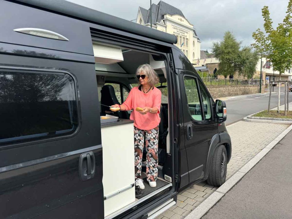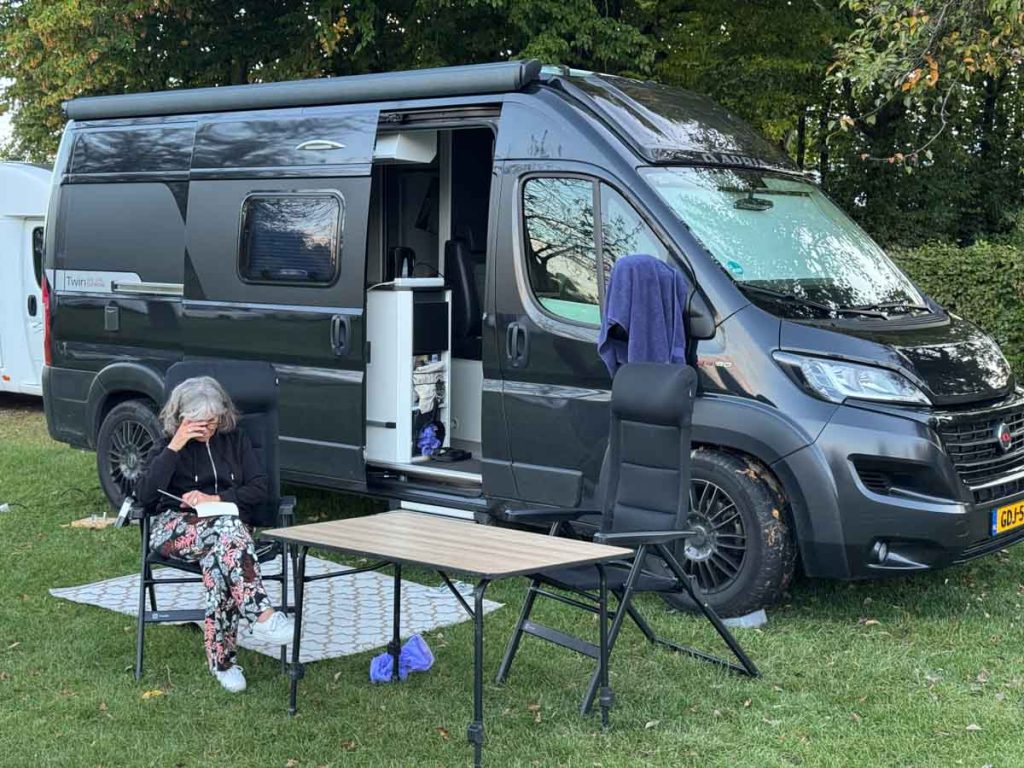 Onze eerste dag met de camper zit erop. Het rijden voelde verrassend vertrouwd, bijna net zo prettig als met de caravan, al is het natuurlijk wel even wennen aan het formaat en de beperktere ruimte binnenin. Wat meteen opviel, is hoe snel je geïnstalleerd bent op de plek: geen gedoe met aankoppelen of lange opbouw, gewoon neerzetten en je kunt al genieten.